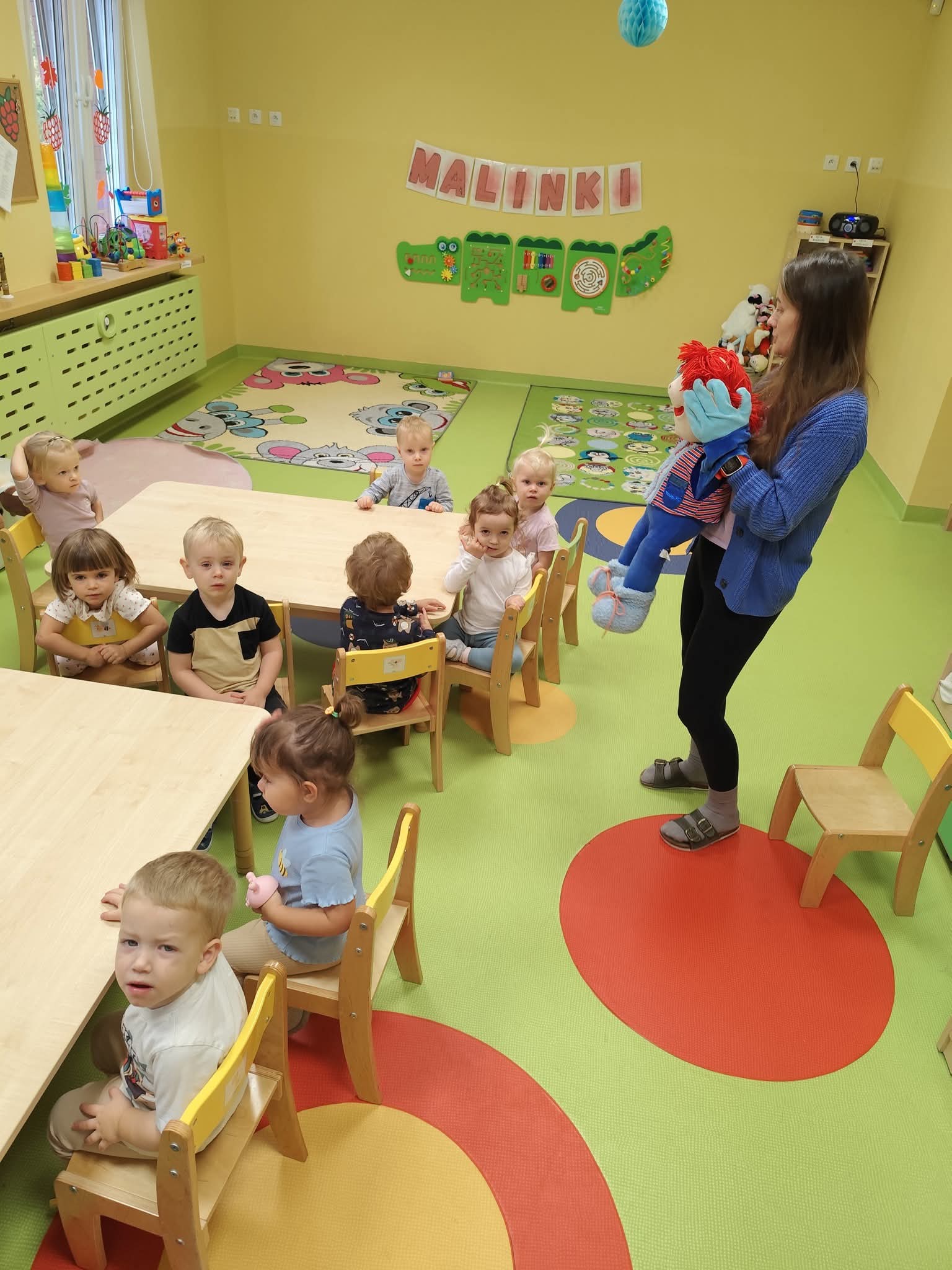 Zabawa: ruchowe zabawy, pacynki, muzyka